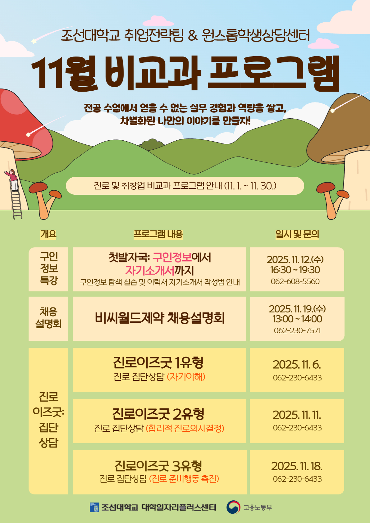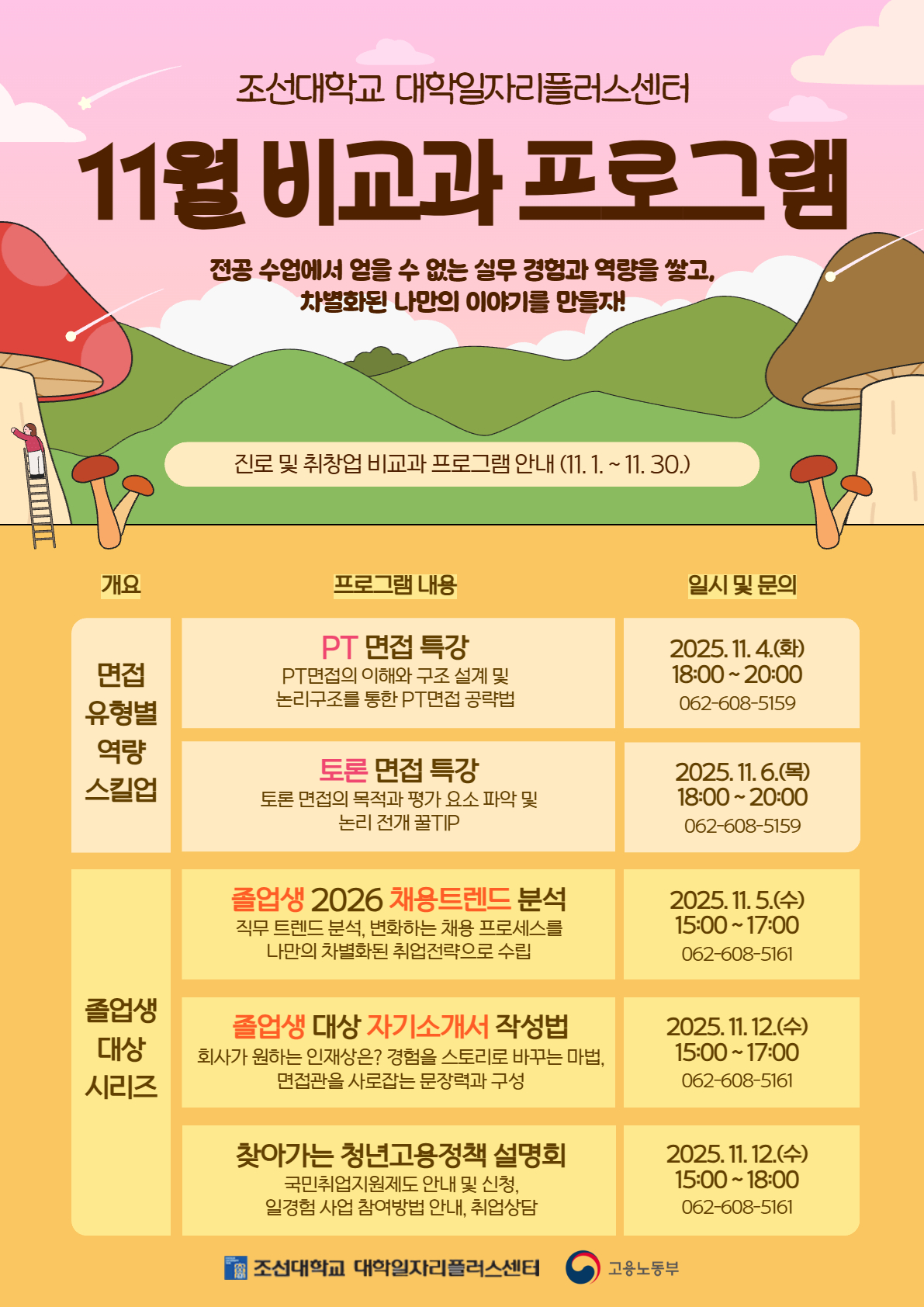 [대학일자리플러스센터] 11월 교내 진로 및 취창업 비교과 프로그램 안내