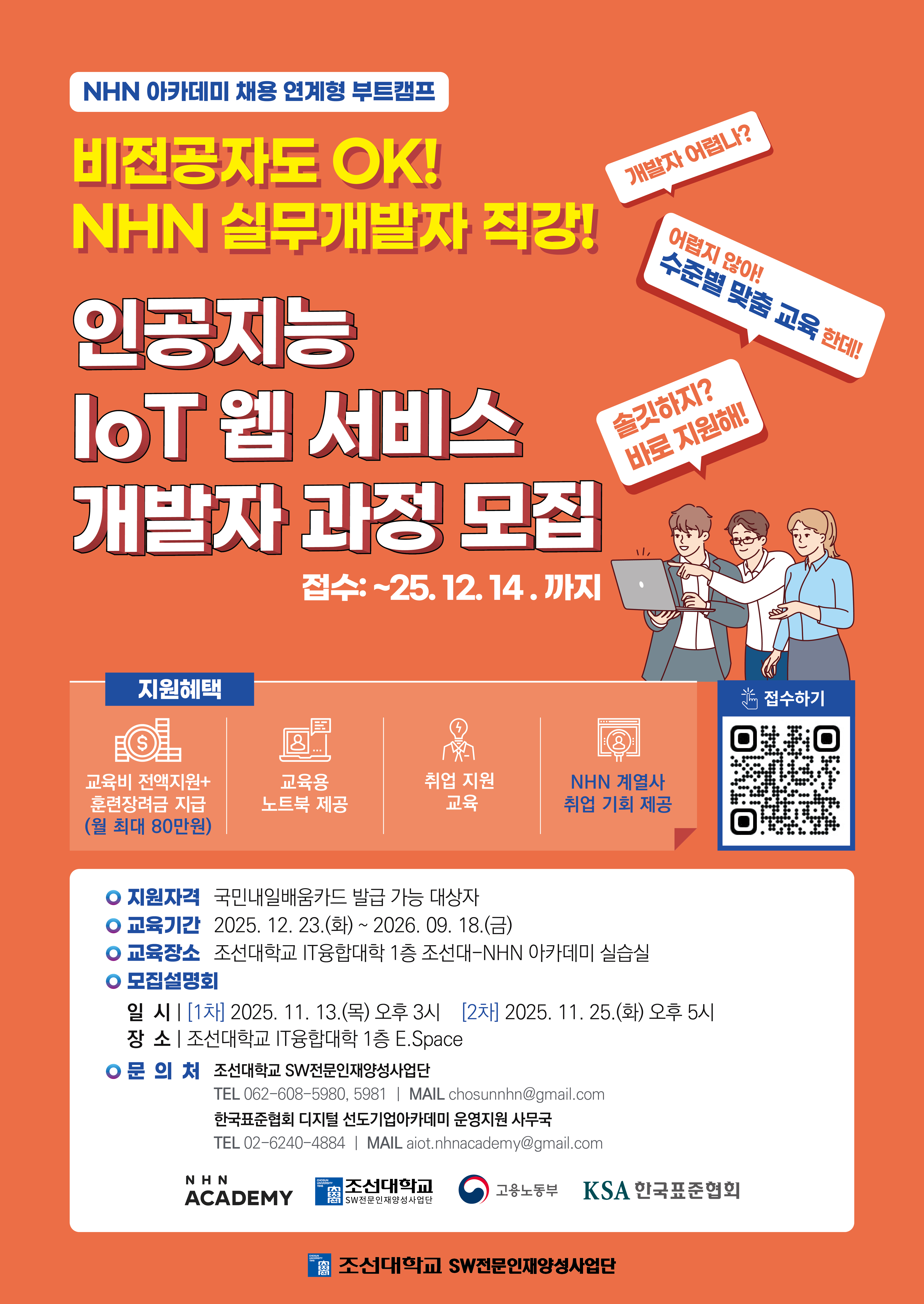[잔여 7석 선착순 추가 모집!][NHN 아카데미 채용 연계형 부트캠프] 인공지능 IoT 웹 서비스 개발자 과정 모집