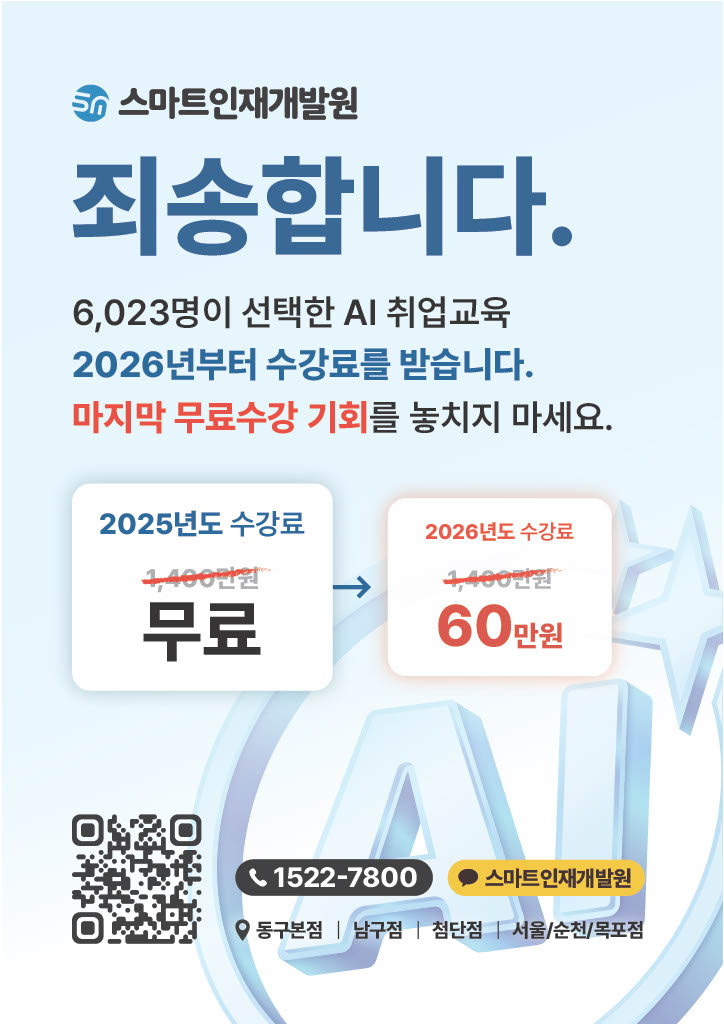 👉 올해 마지막 무료수강 기회를 놓치지 마세요!