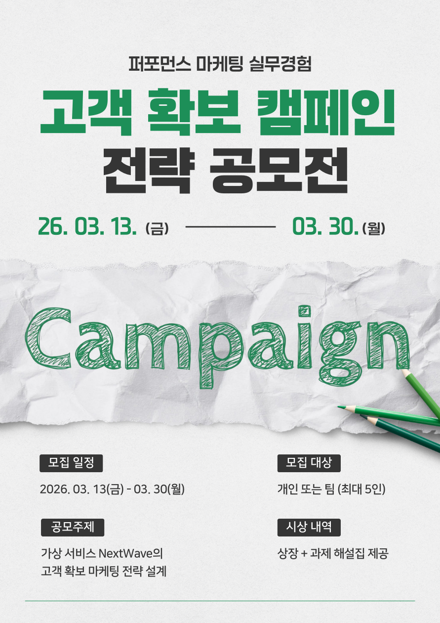 퍼포먼스 마케팅 실무 경험 | 고객 확보 캠페인 전략 공모전(~3/30)