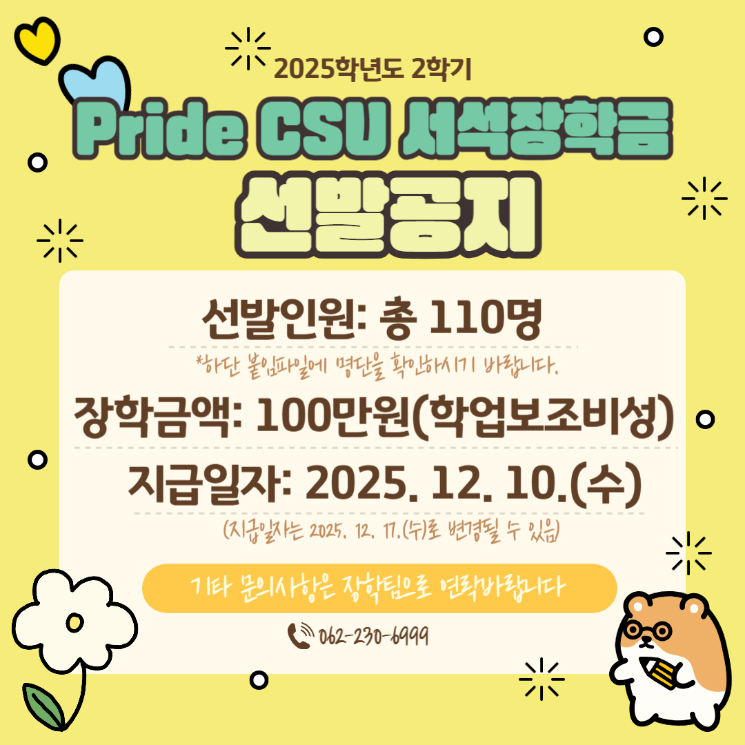 [선발 결과] 2025학년도 Pride CSU 서석장학금 선발결과 공지