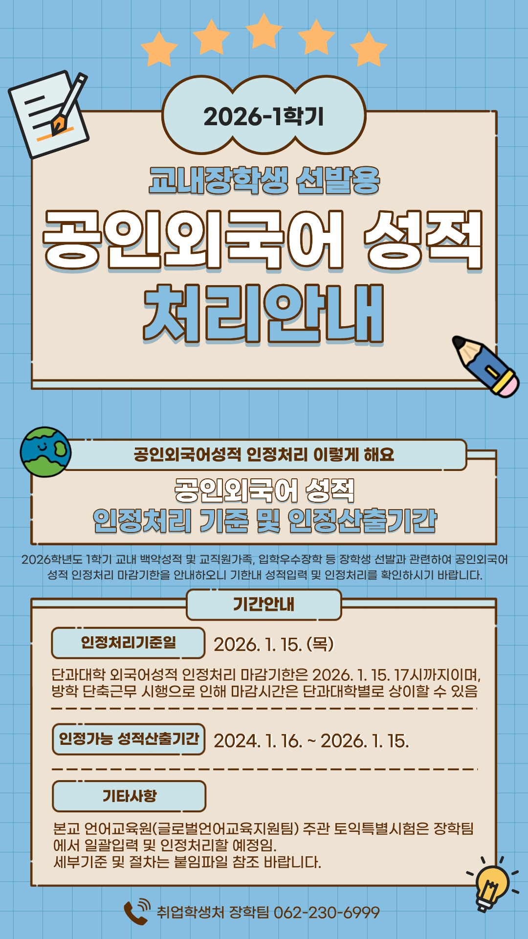 2026-1학기 교내 장학생 선발을 위한 공인외국어성적 처리 안내