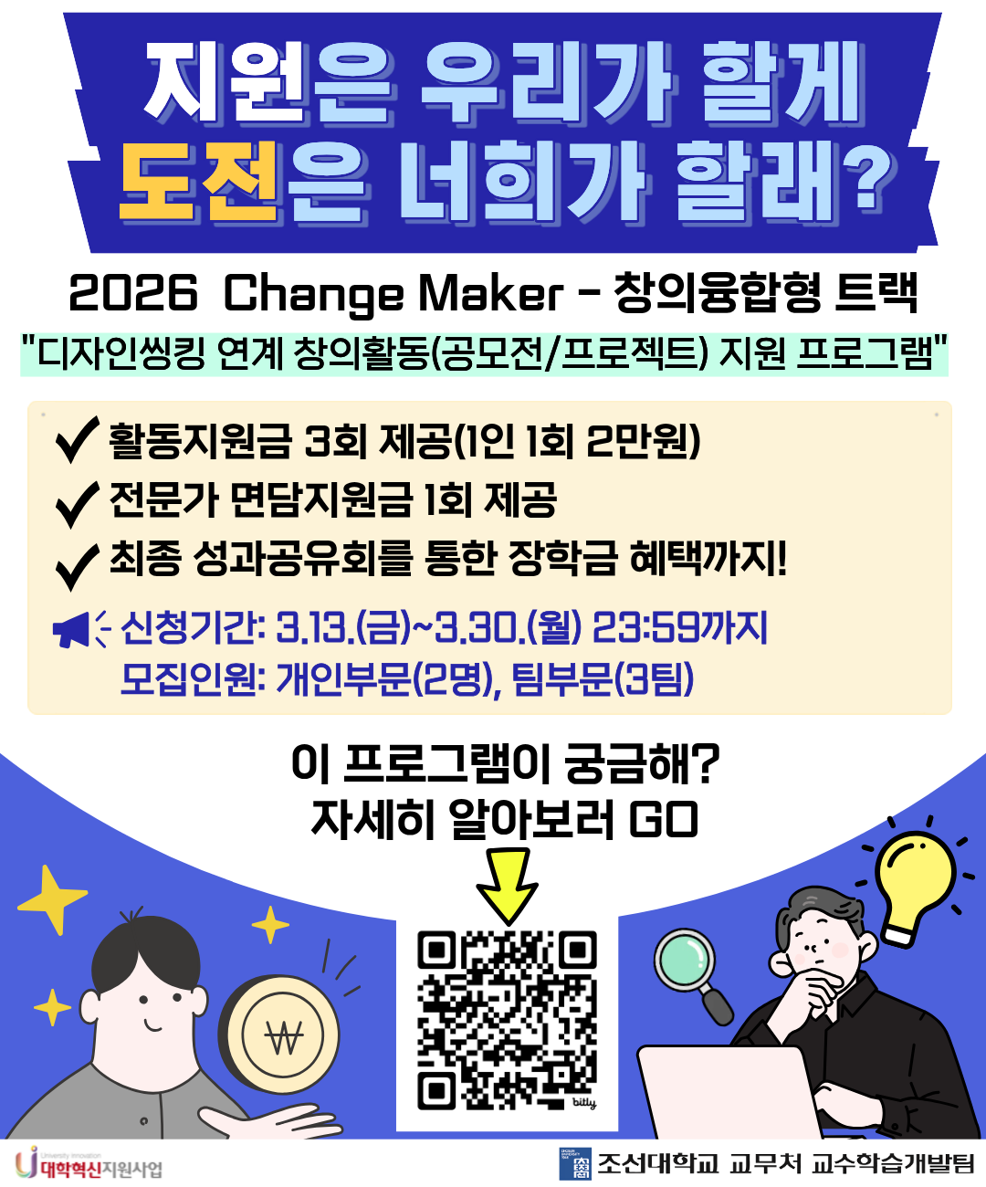 [교수학습개발팀] Change Maker 창의융합형 1기 참여자 모집!