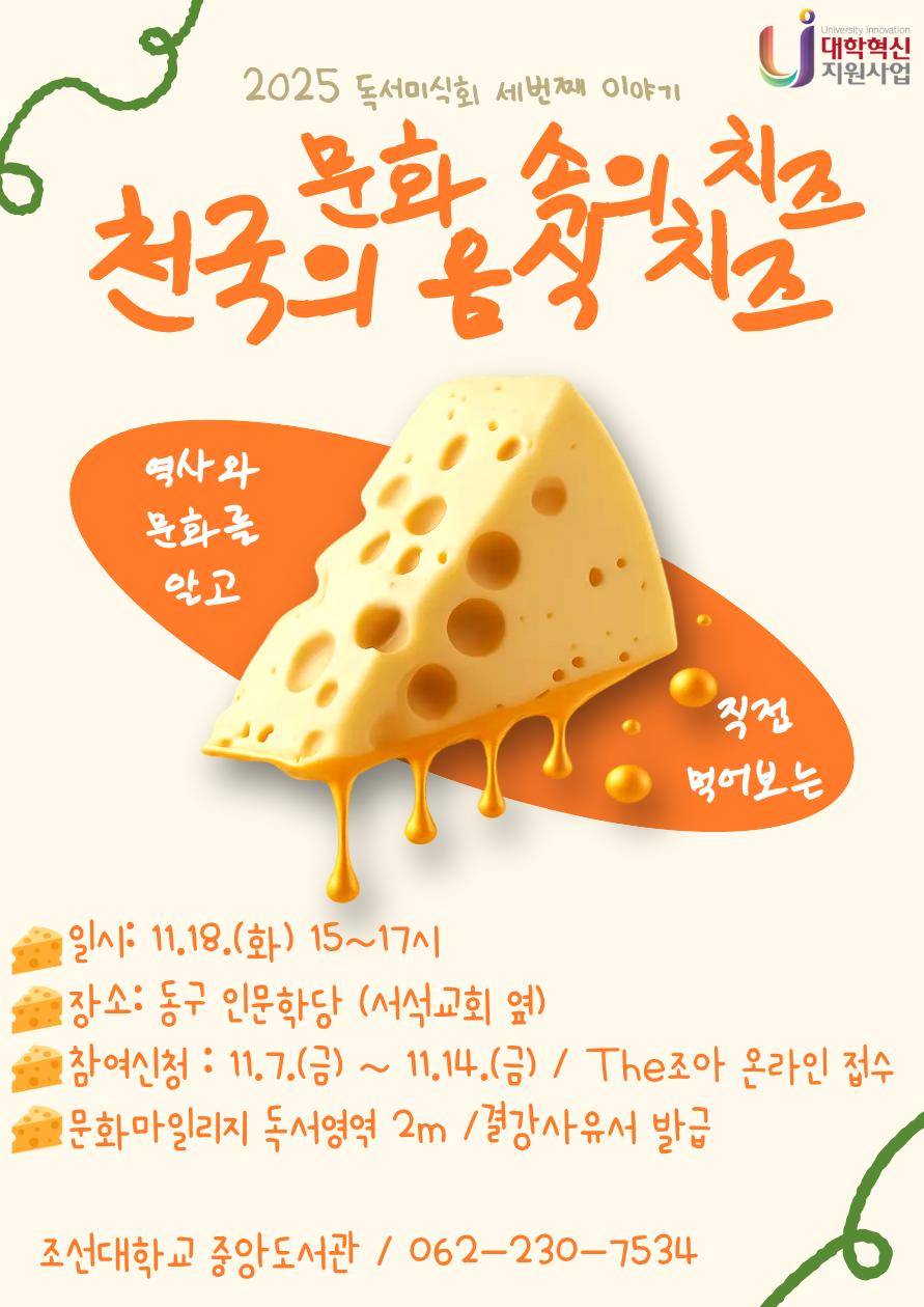[대학혁신지원사업] 2025 독서미식회(3회) "문화 속의 치즈" 행사 안내